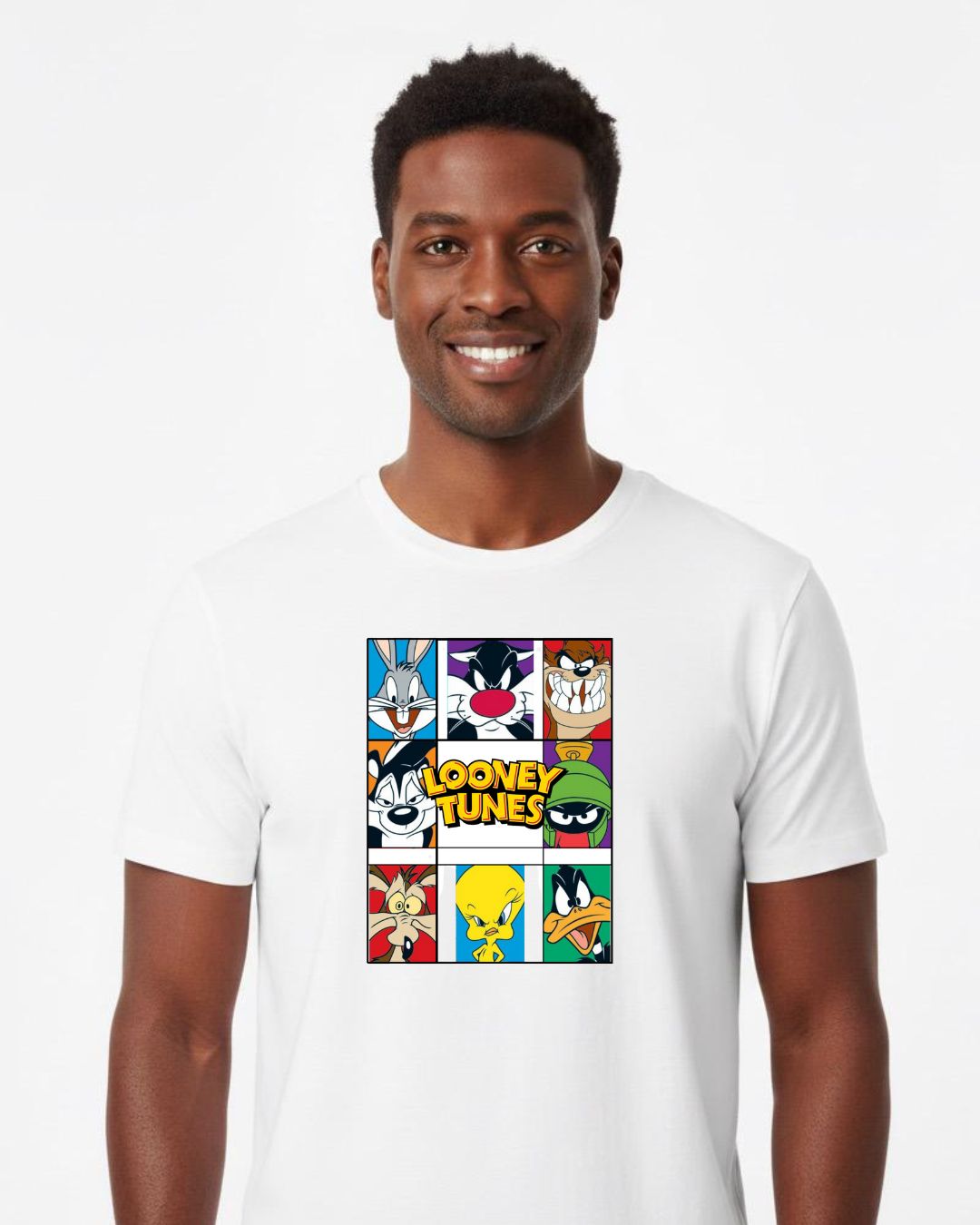 A Camisa Unissex Looney Tunes é uma peça fabricada em tecido de alta qualidade, garantindo maciez e conforto ao usar. Seu caimento premium proporciona um ajuste perfeito ao corpo, ideal para quem busca estilo com praticidade. A estampa exclusiva traz os personagens icônicos da série com cores vibrantes e impressão durável que não desbota com lavagens frequentes. Disponível em cores básicas como branco e preto, combina facilmente com diversos estilos, desde o casual até o streetwear moderno.